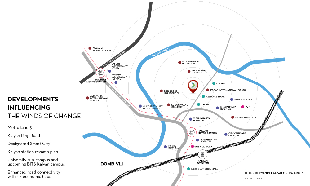 Infrastructure is the backbone of real estate demand, and Kalyan is witnessing massive upgrades. The proposed Kalyan Ring Road will reduce travel time across the city, while the revamp of Kalyan Railway Station will further improve commuter convenience.