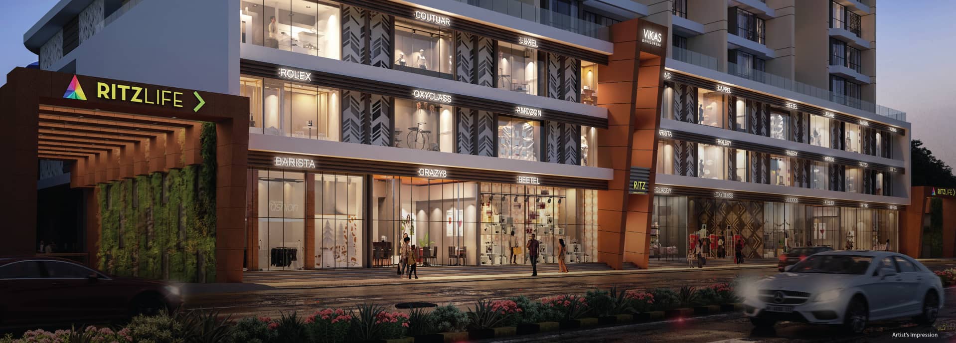 - Retails Spaces Ranging from 350 Sqft to 600 Sq.ft.